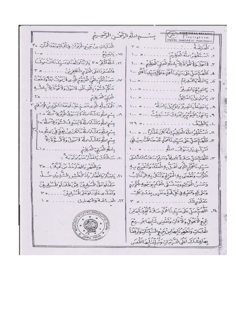 Harapan kami, informasi tentang download bacaan istighosah lengkap pdf yang disajikan di halaman ini bisa membantu anda dalam mendapatkan informasi terkait . Pwnu jatim menyelenggarakan istighotsah kubro pada tanggal 9 april 2017 di gor sidoarjo dalam rangka peringatan hari lahir nahdlatul ulama . Dan aku tolak dan hindarkan dari kalian segala keburukan dengan sejuta bacaan "la haula wa la quwwata illa billahil aliyyil adzim". Ikuti istighosah kubro online #dirumahaja bertepatan malam nishfu . Teks bacaan istighotsah kubro online dzikir & do'a 19 kyai sepuh.